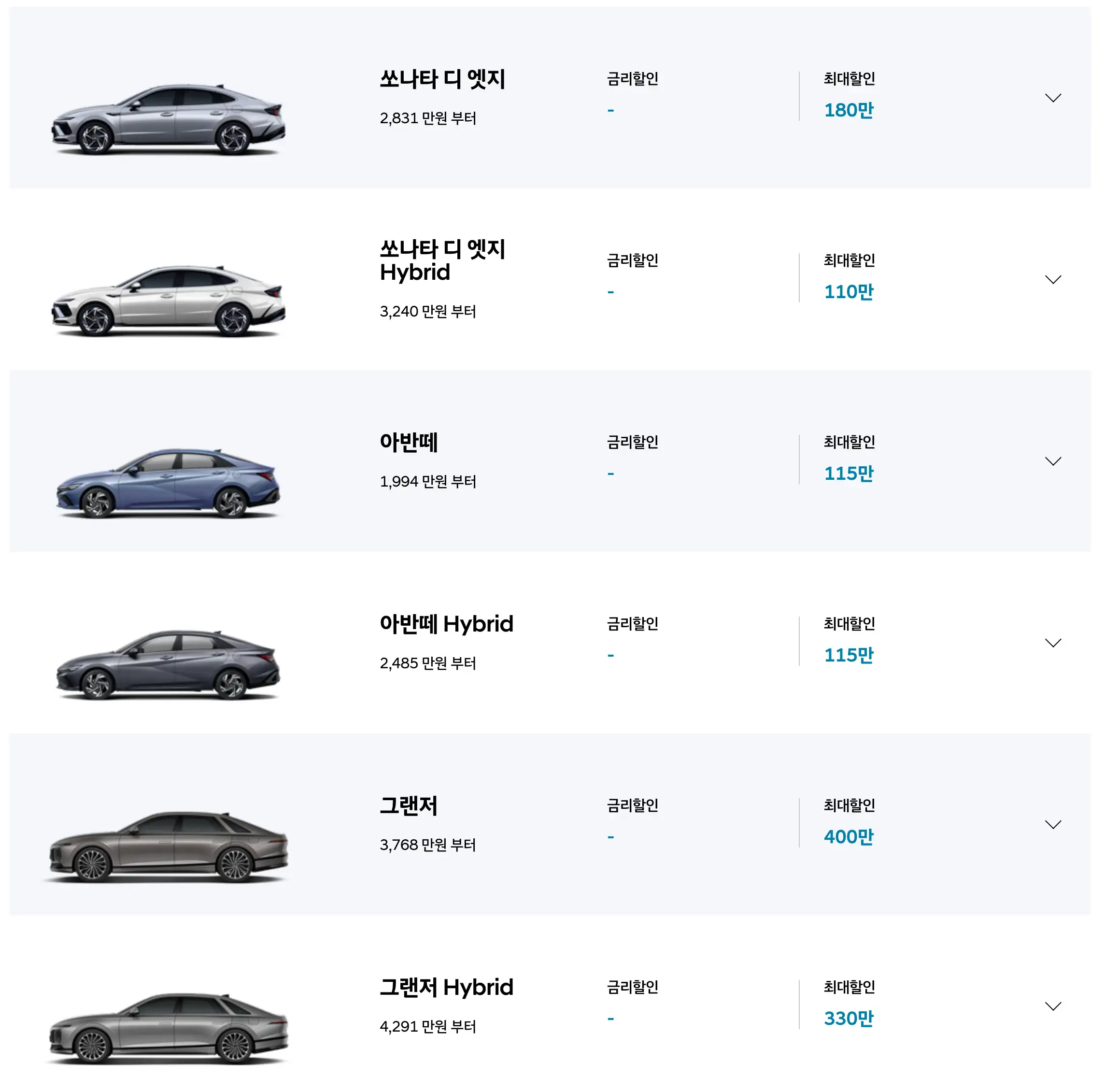 - 하이브리드: 최대 330만 원 할인