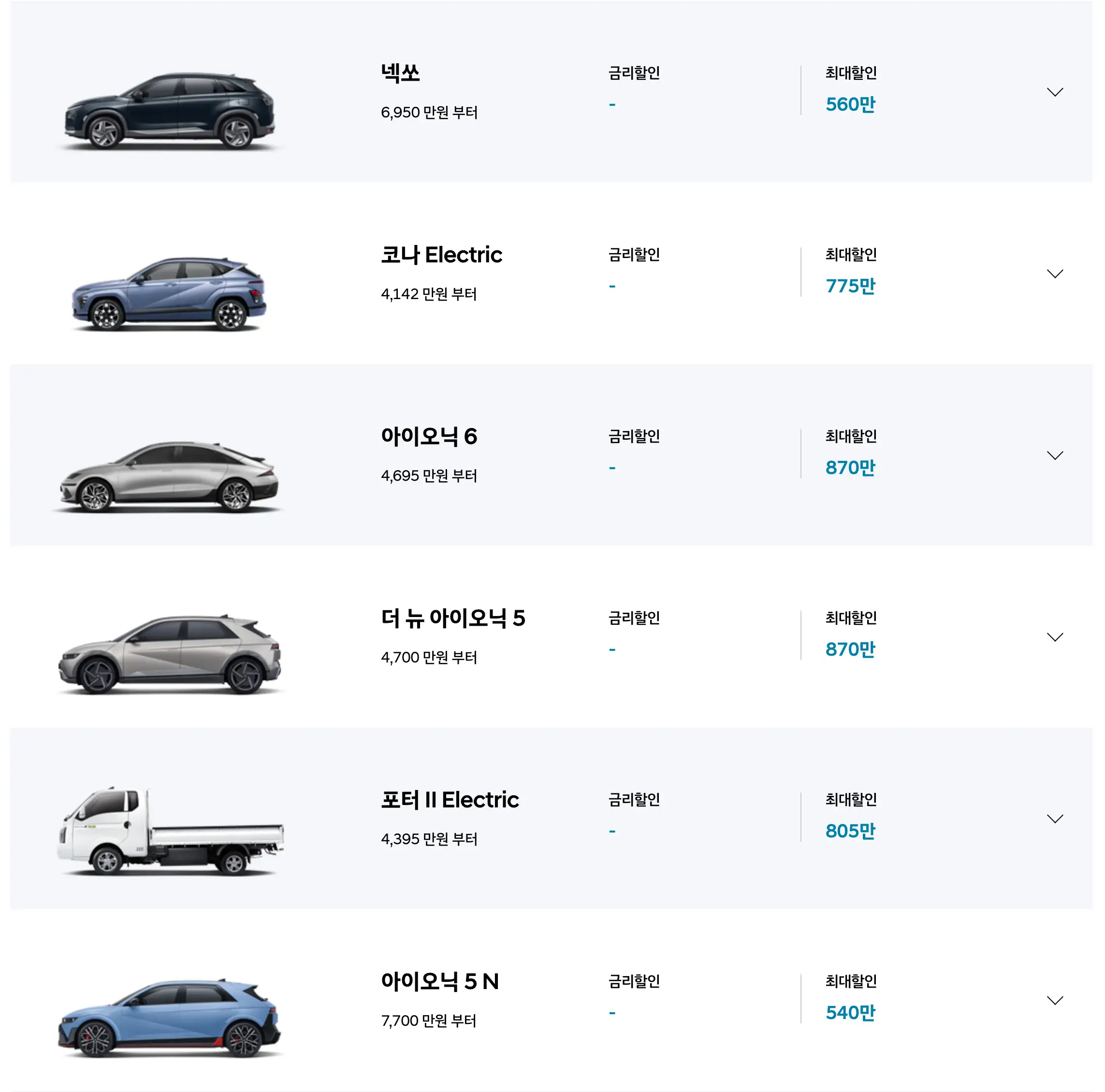 - 아이오닉 5, 아이오닉 6: 최대 500만 원 할인