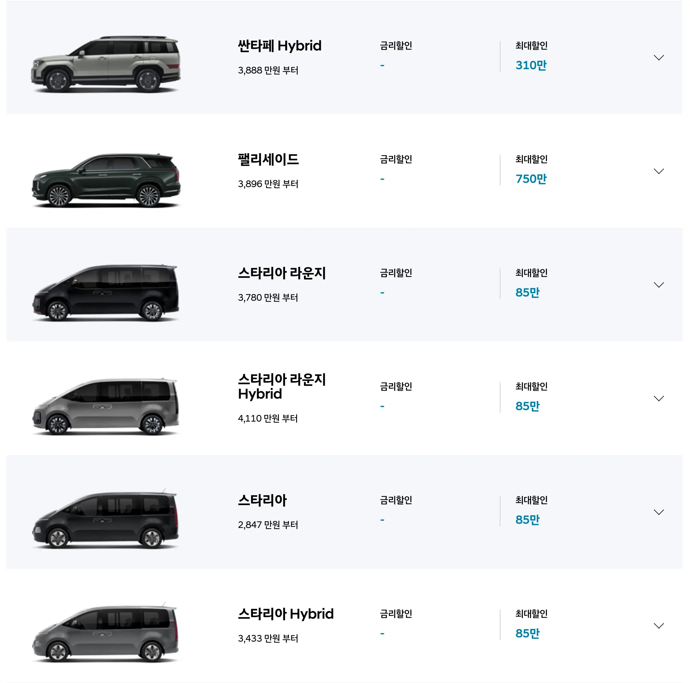 - 하이브리드: 최대 310만 원 할인