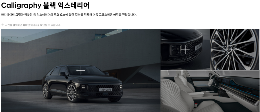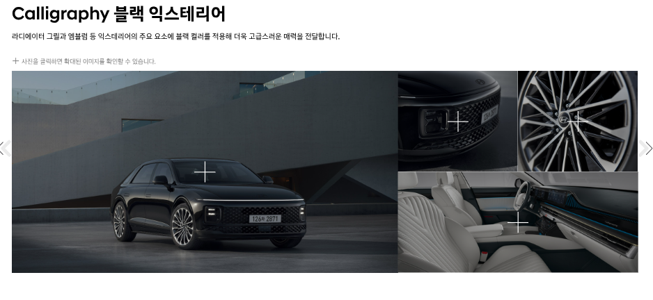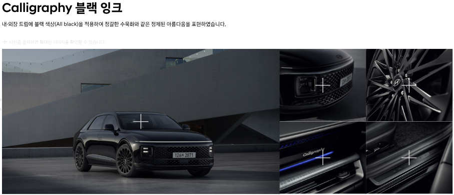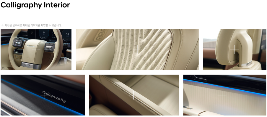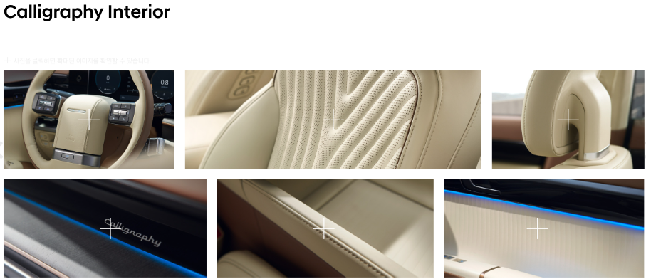 • 캘리그래피 전용 19인치 휠, 나파 가죽 스티어링 휠, 고급 목재 내장재 등으로 차별화된 고급스러움을 제공합니다.