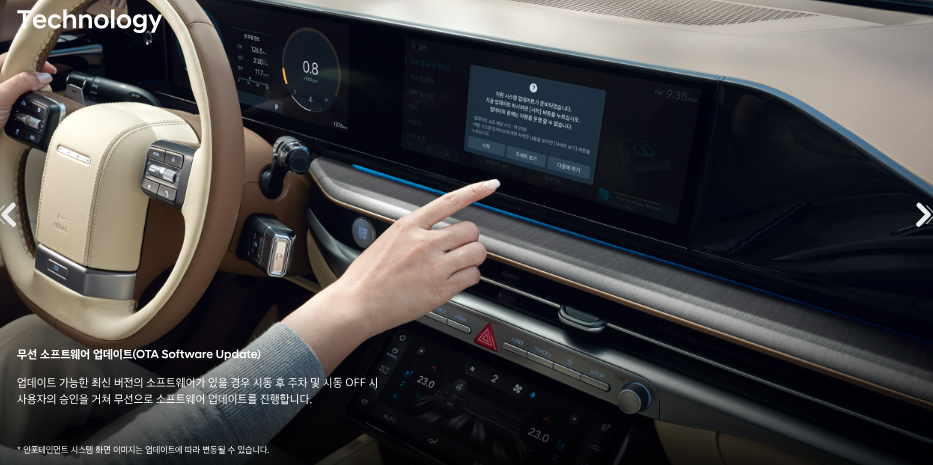 • 기존 업데이트 가능 항목(엔진, 변속기, 내비게이션) 외에도 공조 시스템까지 OTA 업데이트 범위가 확대되어, 지속적인 기능 개선이 가능합니다.