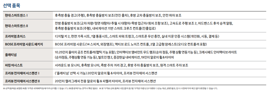 • 프리미엄 기본 사양 포함 + 추가 편의 기능: